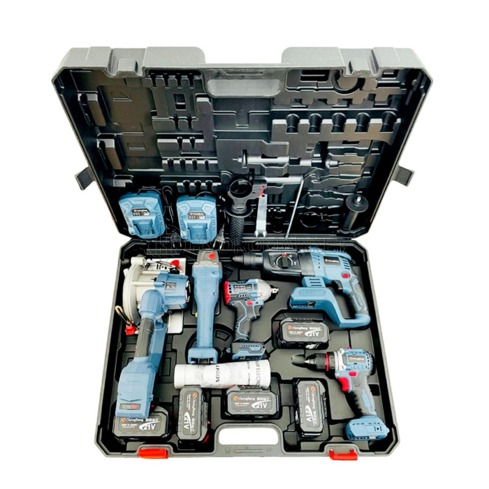 Deskripsi / 5PCS Lithium Brushless Power Tool Set 5 Batteries 2 Chargers – Set Perkakas Tanpa Kabel