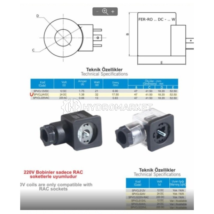 Konektor (chip) untuk coil 12-24V ø18 memiliki karakteristik teknis sebagai berikut: