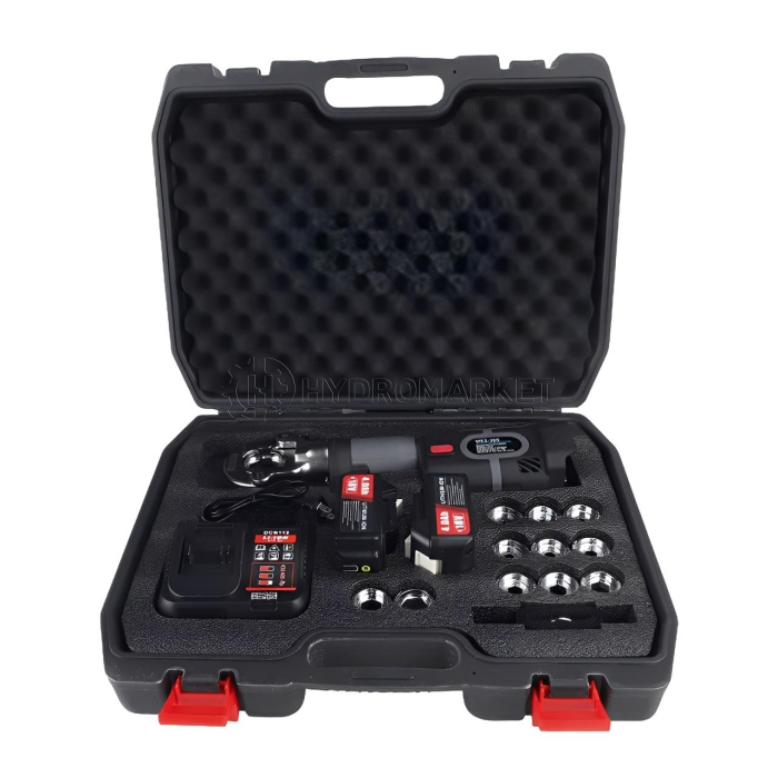 Dibandingkan dengan tang hidrolik manual, versi elektrik ini hanya perlu dikendalikan dengan satu tombol, serta dapat secara otomatis kembali ke posisi semula setelah crimping selesai, sehingga lebih menghemat waktu dan tenaga. Dua baterai lithium-ion 4.0Ah memberikan waktu siaga panjang tanpa perlu sering mengisi ulang, dan Anda tidak perlu khawatir kehabisan daya saat bekerja. Pengisi daya yang disertakan dapat mengisi ulang dua baterai sekaligus, sehingga lebih hemat waktu dan energi.