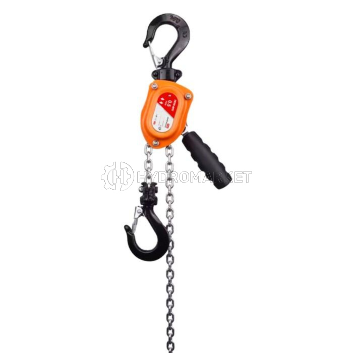 Mini Lever Block Hoist 250 kg x 3 m, durable alloy steel, 360° rotating hook, ergonomic handle, enclosed design, corrosion-resistant brake, aluminum chain block.