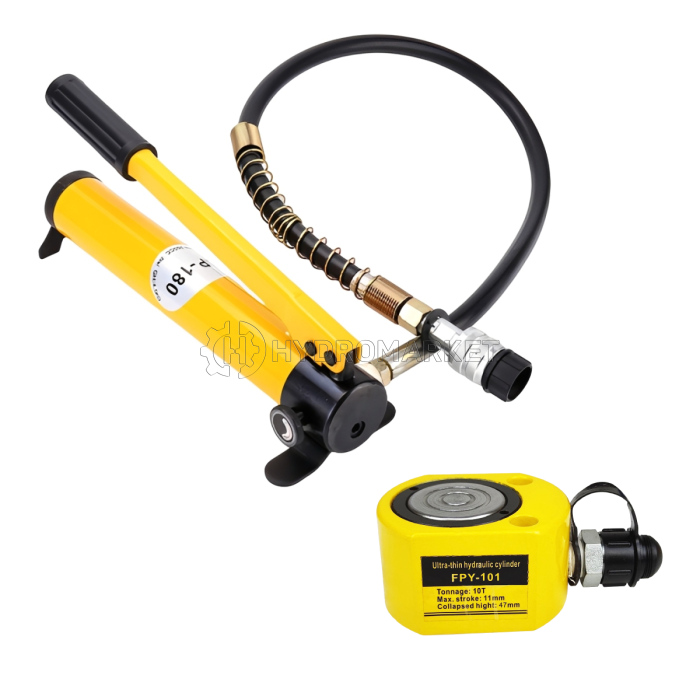 Paket ini terdiri dari silinder hidrolik low-profile FPY-101 kapasitas 10 ton dan pompa hidrolik manual CP-180, dirancang khusus untuk pekerjaan pengangkatan presisi pada ruang kerja terbatas.