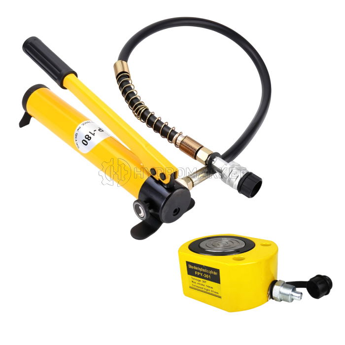 Paket Dongkrak Hidrolik FPY-301 30 Ton + Pompa Manual CP-180 /// Ultra Low Profile Hydraulic Cylinder dengan Hand Pump