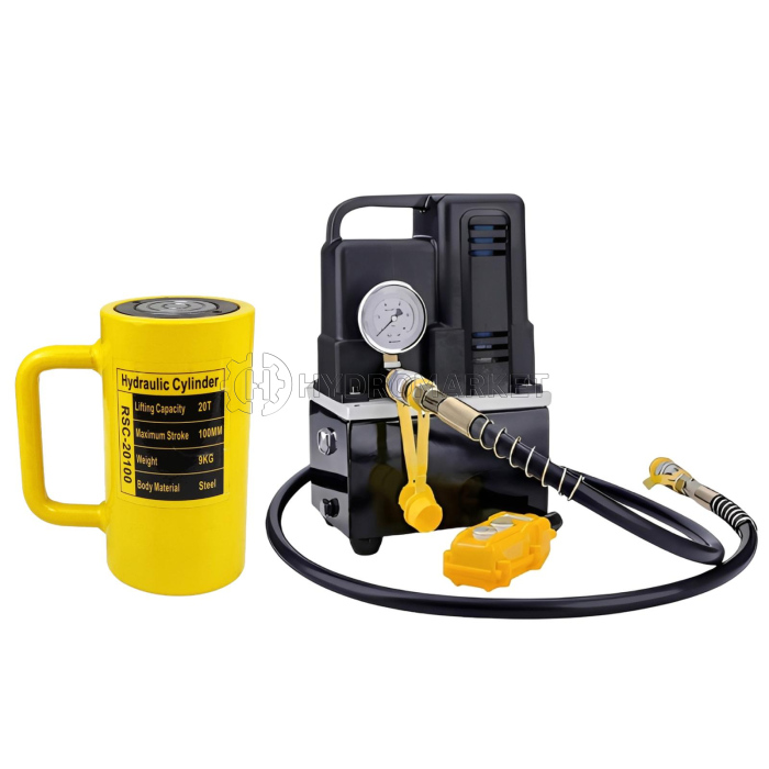 Paket Silinder Hidrolik RSC-20100 + Pompa Hidrolik Elektrik QQ-700 /// Dongkrak Hidrolik 20 Ton Stroke 100mm 700 Bar