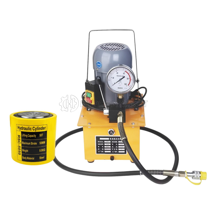 Paket Dongkrak Hidrolik RSC-5050 + Pompa Hidrolik Elektrik ZCB-700A /// Hydraulic Cylinder 50 Ton dengan Electric Pump 700 Bar