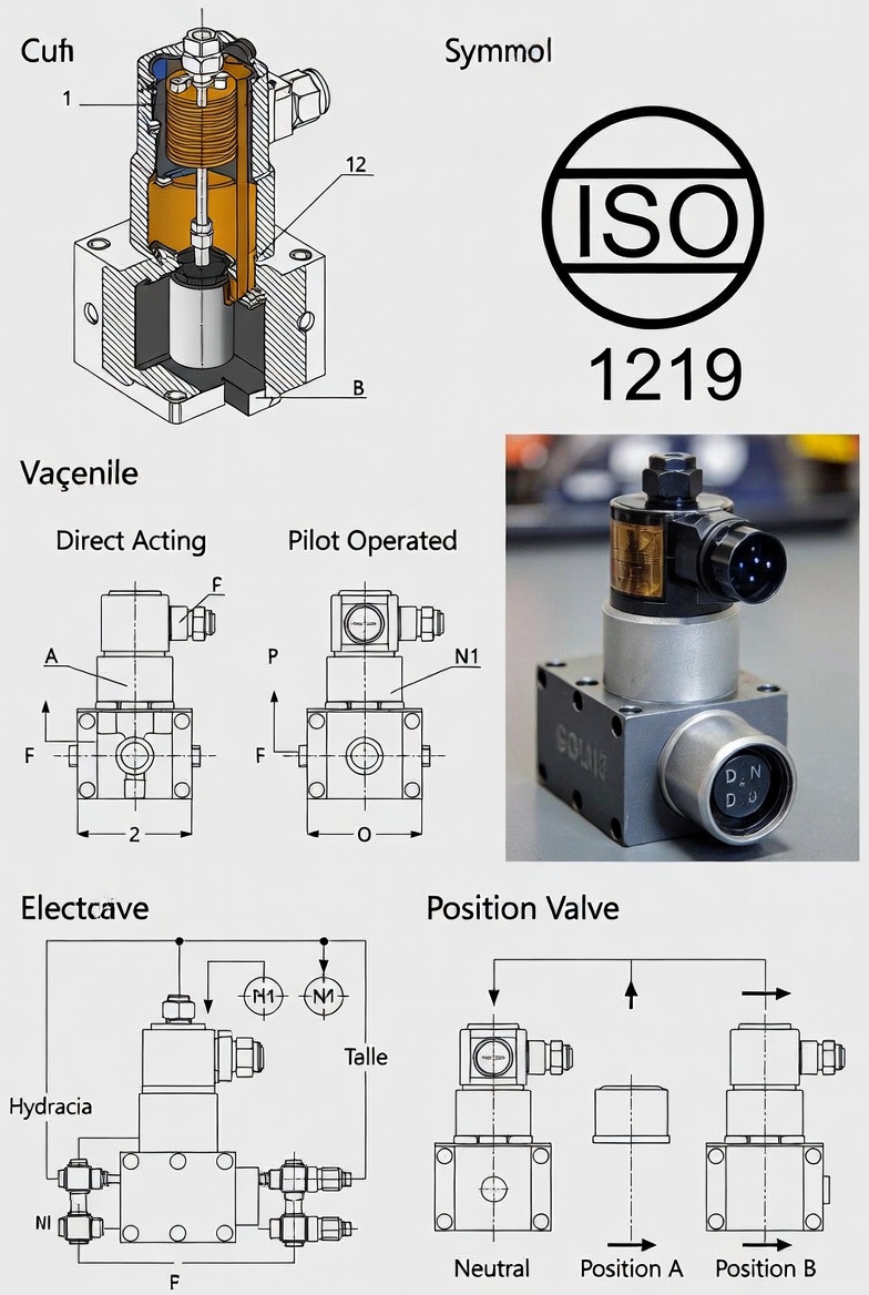 - Pilot operated — solenoid mengontrol pilot kecil yang kemudian menggerakkan spool utama (untuk aliran besar dan tekanan tinggi).